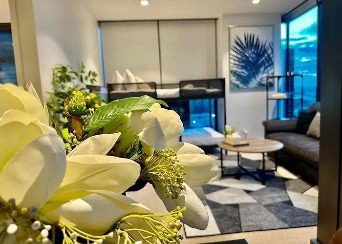 Die Mahlzeiten können in einer kompletten Küche zubereitet werden. Die Bushaltestelle A'Beckett Street/Queen Street befindet sich 150 Meter vom Stylish 2B1B Apartment With Indoor Balcony entfernt.